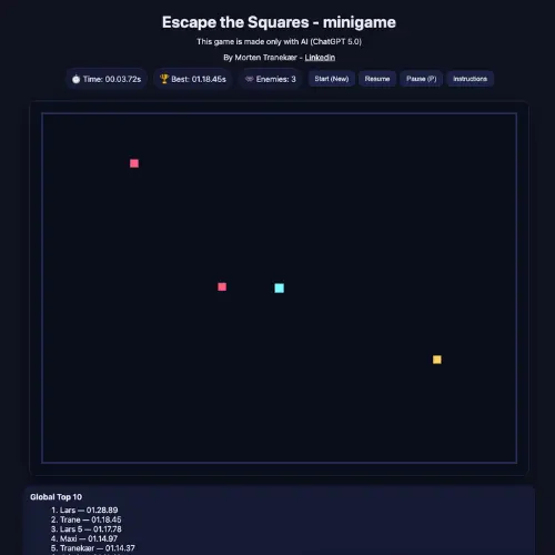 Projektet er 100% lavet for sjov, for at teste hvor nemt det er at bygge et relativt simpelt spil med chatGPT.